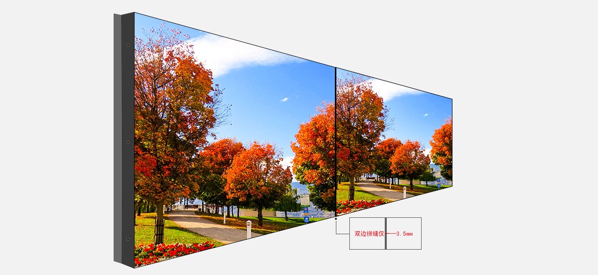 右/下邊的邊框寬度為1.3mm,多屏拼接時邊框間隔僅3.5mm