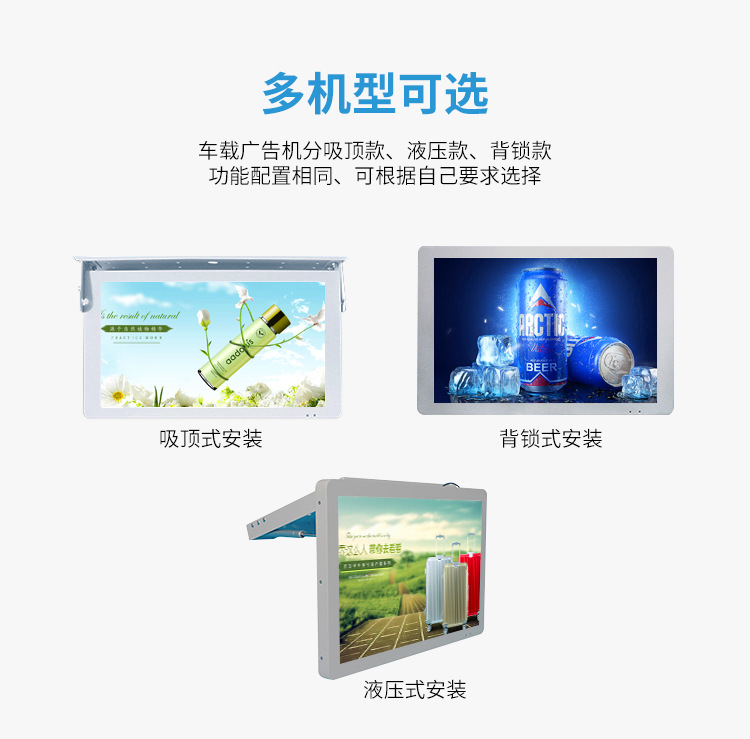 中宇視通是32寸車載廣告機(jī)生產(chǎn)廠家,我們提供吸頂車載廣告機(jī)、背掛車載廣告機(jī)、折疊式車載廣告機(jī)多種安裝方式,滿足各種車型,內(nèi)置抗振設(shè)計,減少車載環(huán)境內(nèi)震動對機(jī)器本身的影響,能讓機(jī)器在特殊情況中穩(wěn)定運(yùn)行。